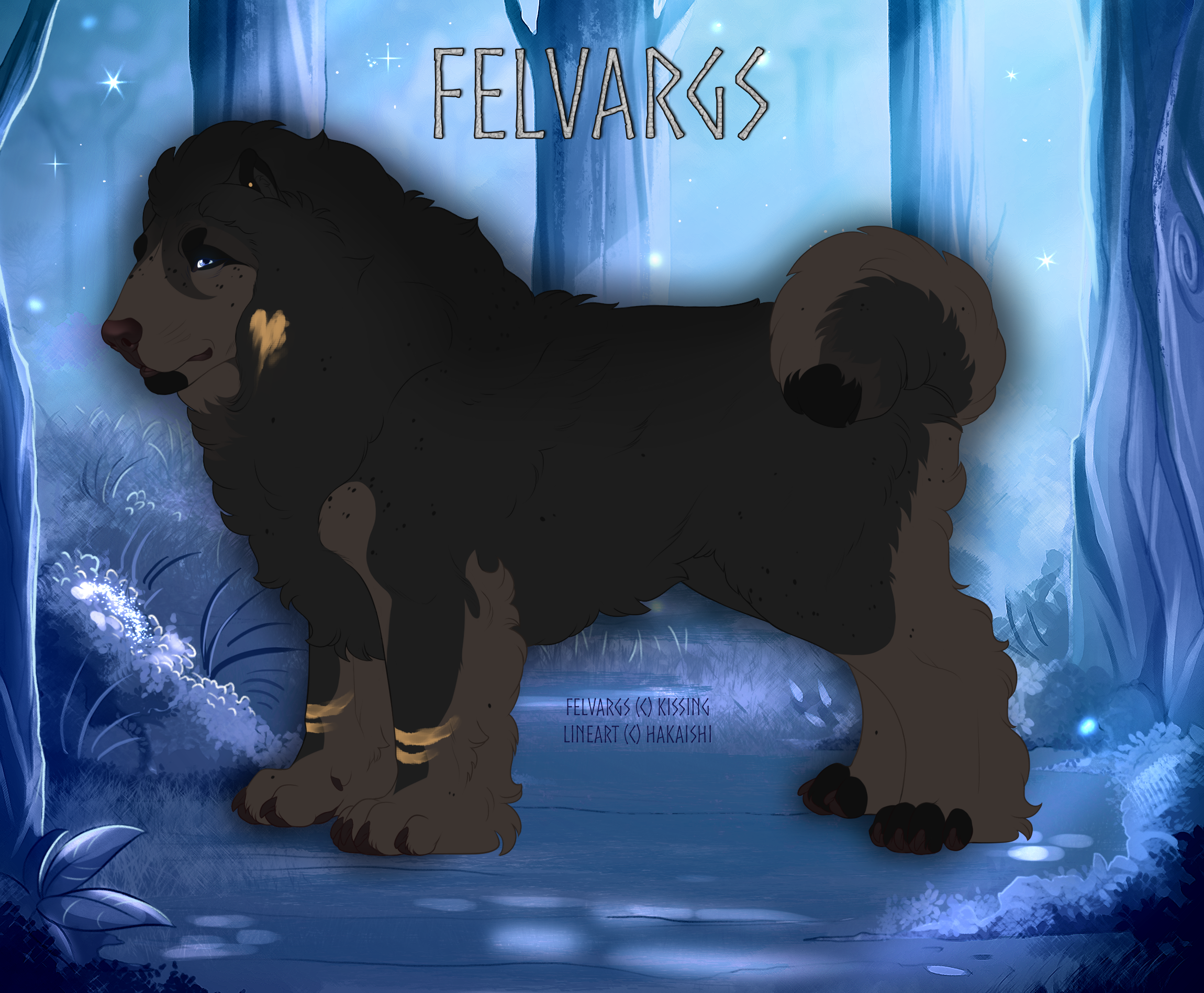 A felvarg often found with a wide grin, Josuke is a friendly and robustly polite felvarg. He's your local, goofy puffball who's got a nose for curious troubles. He prefers the sound of rowdy village banter to the quiet meadows, and he alone could fill an entire forest with chatter. Overall, he's quite a mellow fellow, and can dig up a friend in any individual who's kind. This proud cotton ball has a crippling fault, however. His fur. Oh gods, his fur. It's his pride and joy. His golden ticket. His sweet cinnamon apple. The thing he will tend to even after the world's met its end and there are no reflective surfaces to use. His daily routine is utterly ridiculous, and anyone who causes a stink about it is met with the wrath of an absolute temper tantrum. Oh, Josuke. You lovable idiot.