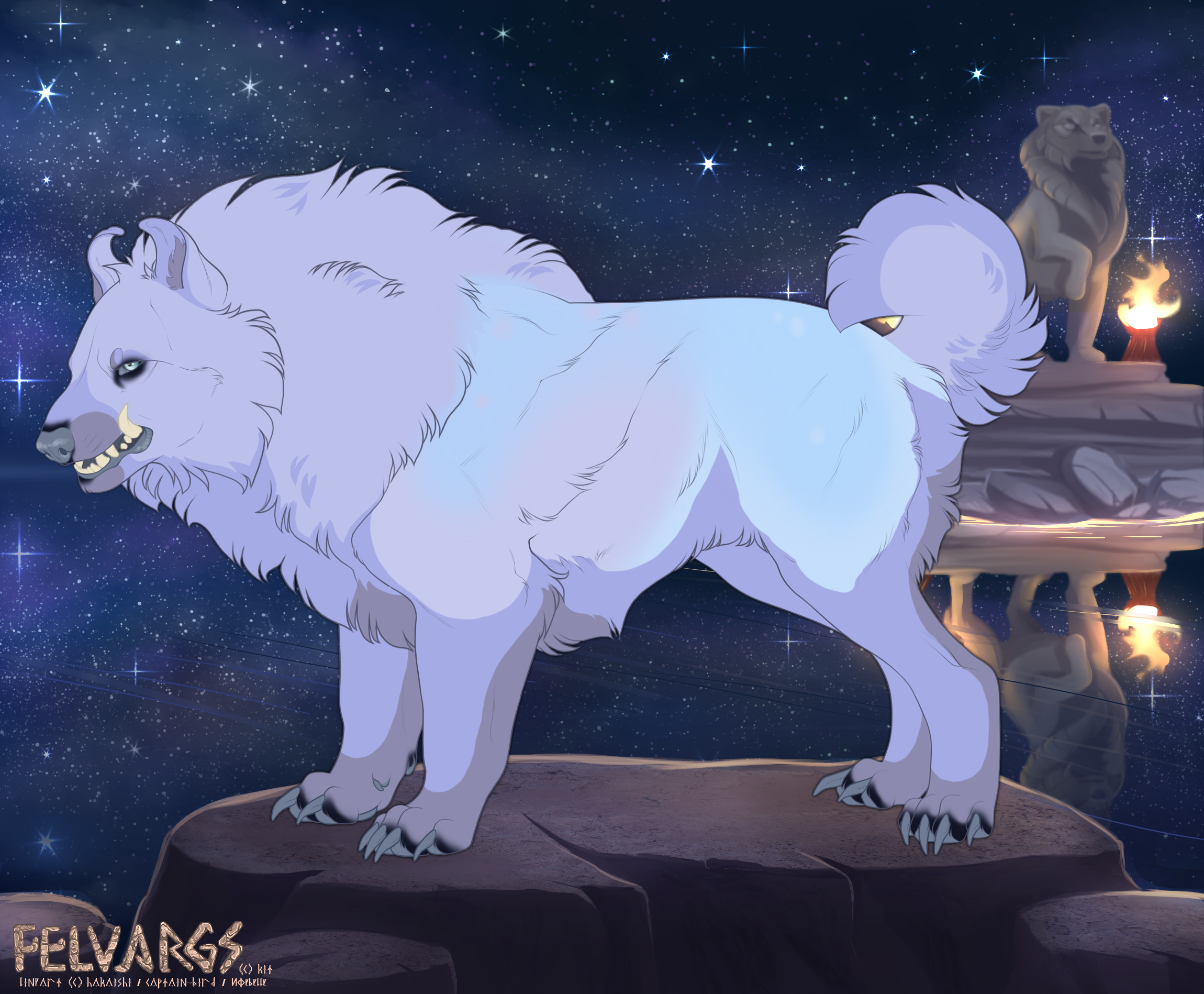 A hellhound plagued rumors of vampiracy, kidnapping, occult... he remains solitary with the knowledge he will never be trusted, every encounter just a misunderstanding between fearful felvargs and a "half-breed" like him. Yohio, contrary to popular belief, will not suck blood nor will he kidnap your mates and pups to feed an insatiable hunger or sacrifice them to an ancient diety; though he does possess powers of unusual nature brought upon him at puphood: Everything he touches turns ice cold?