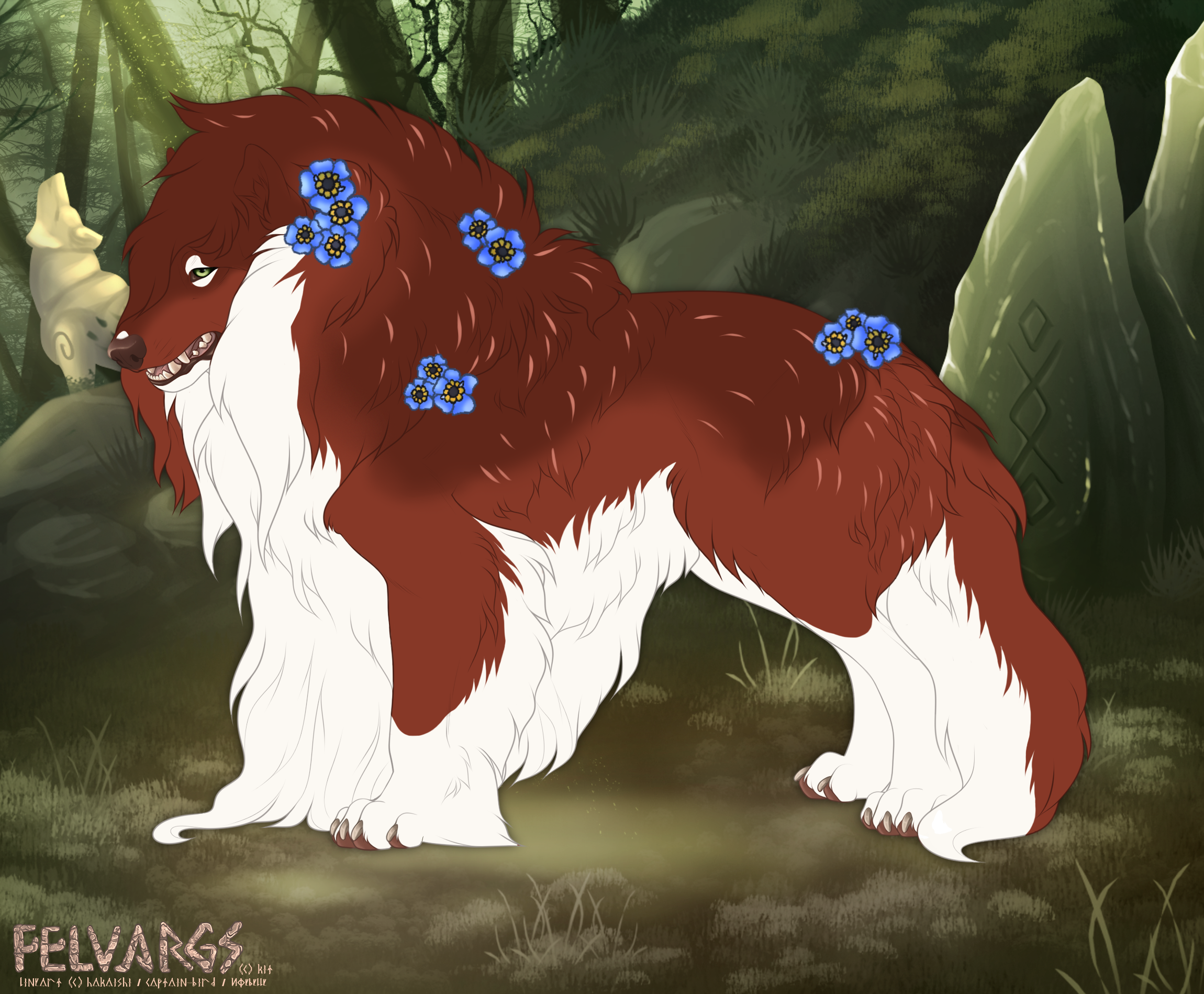 As one of Saga's children, Fable carries herself in a way that would honor the alphas and rightous spirits of Ulfrheim. She is sweet natured Felvarg who is happy to help any fel she meets, whether or not she knows much about the task they need a paw with. She doesn't mind learning on the fly, if it makes their tasks easier. She has a sense of wonder for the world around her, loving to wander, explore, and meet as many different Felvargs she can. For Fable, life is about the journey and those you meet, rather than the end of it all. As such, she takes great pride in recording, memorizing, and sharing the stories of Felvargs throughout the years, focusing on the meanings of light, hope, and positivity that can come from them. No matter how dark your beginnings, Fable believes that your life can turn for the better, and she even has hope for Fels with dark paths like Loki. Due to her enthusiasm and long winded tales, however, Fable has earned the nicknames Eternus and Eon in jest, a sign that while her stories are told well, they can be long winded and seem to be without an end. Fable wears these nicknames with pride and feels that stories should always continue, and be remembered, for all of time. (Positive | Helpful | Knowledgable)