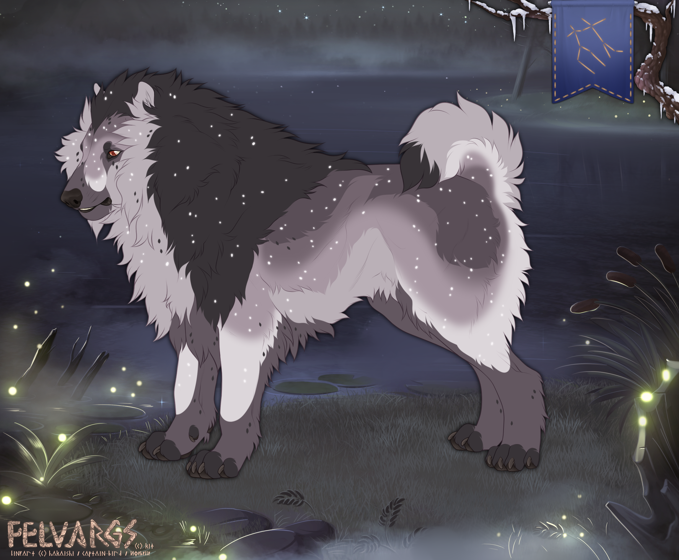 Phenotype: Molten Dusk Silver with Overlay, Splash, Maned, Tipped, Highlight, Sable, Flecking, Ethereal