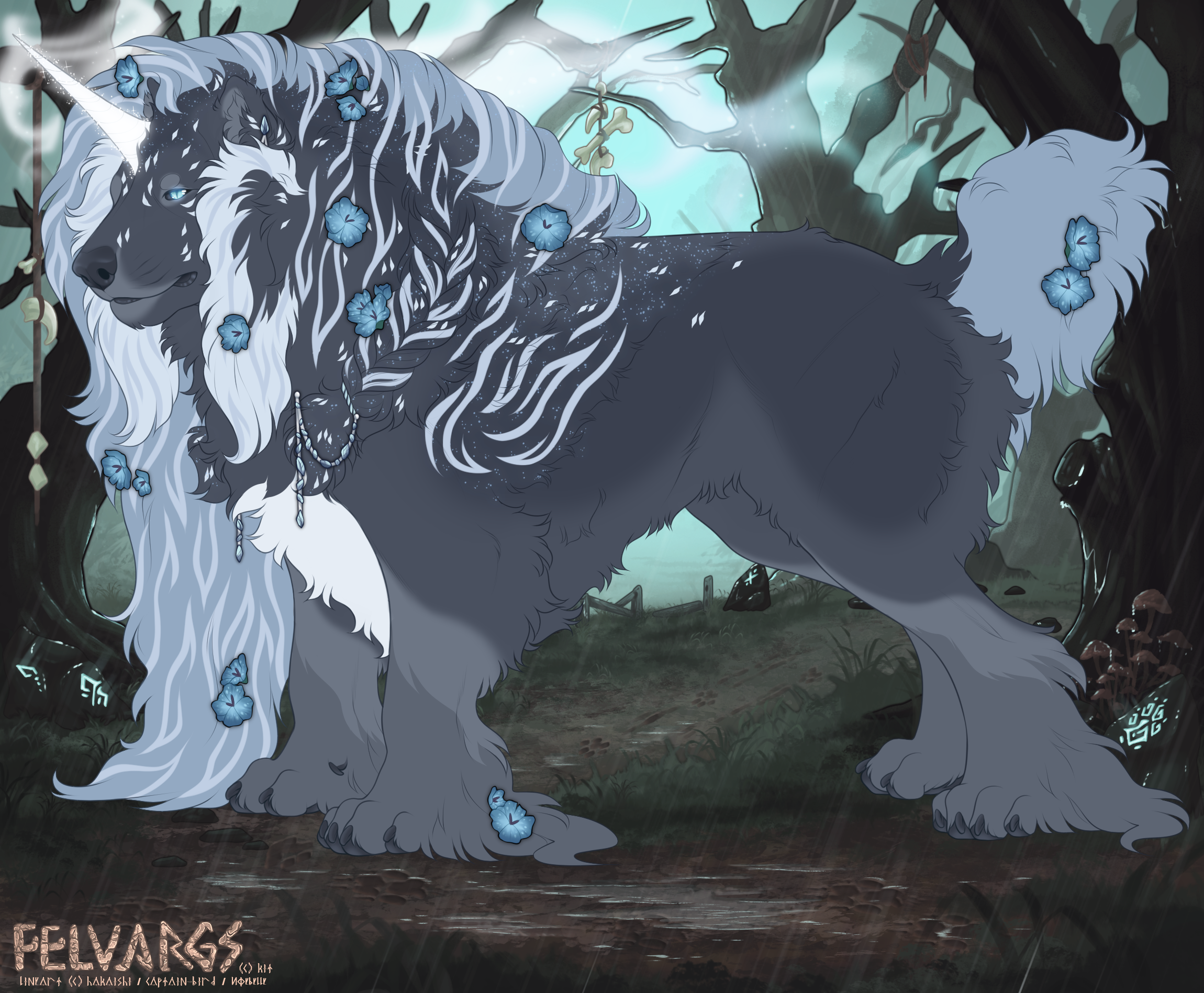 Phenotype: Midnight Black with Splash, Maned, Highlight, Brindle, Toned, Accents, Flecking, Moonkissed, Ethereal