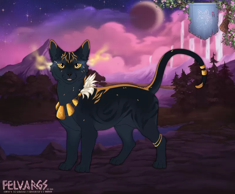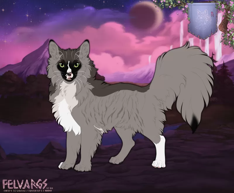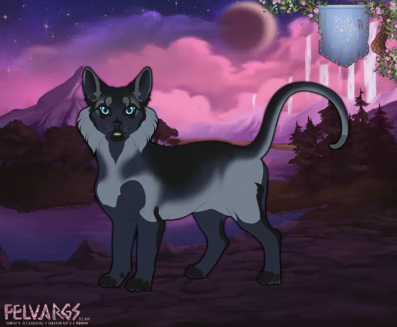 This lost Nattnkatt has been wandering the drifting shores of Miðhafsey, where waterfalls spill endlessly from the sky. Now they are seeking shelter. Reveal a randomly rolled Nattnkatt. Your lineage will be assigned upon submission.